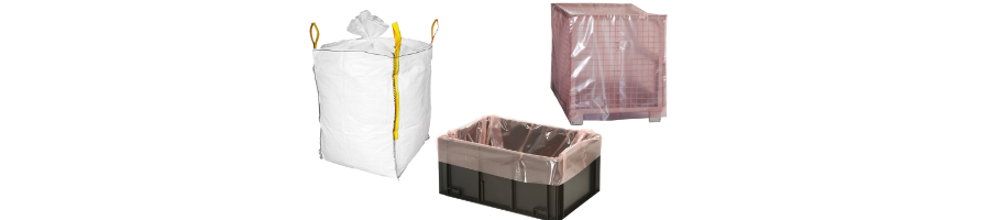 - Pytle: Průmyslové pytle na sypké materiály a odpad, různé velikosti a materiály.