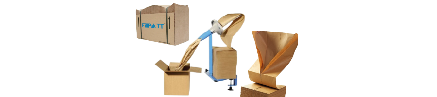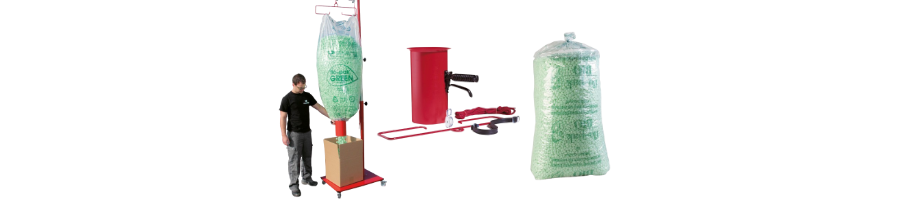Materiály pro výplň a ochranu zboží během přepravy a stroje pro využití s nimi.
