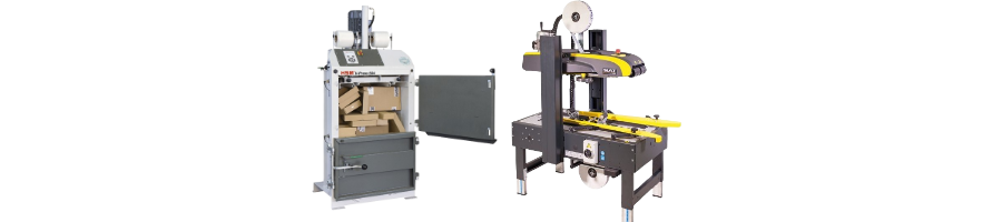 - Páskovače: Manuální a automatické páskovače pro různé šířky pásek.